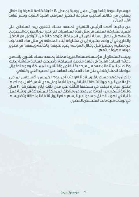 يذكر أن معهد مسك للفنون قد أقام اعتباراً من يوم الخميس 1أغسطس الماضي،