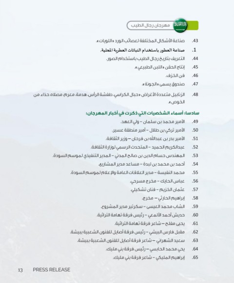 سادسا :أسماء الشخصيات التي ذكرت في أخبار المهرجان: