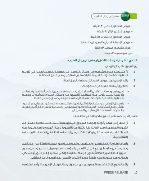 الحادي عشر :آراء وملاحظات زوار مهرجان رجال الطيب: