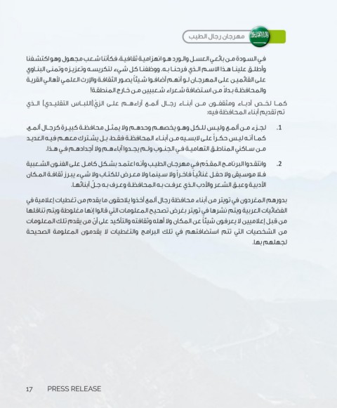 2.2وانتقـدوا البرنامـج المقـ ّدم فـي مهرجـان الطيـب وأنـه اعتمـد بشـكل كامـل علـى الفنـون الشـعبية