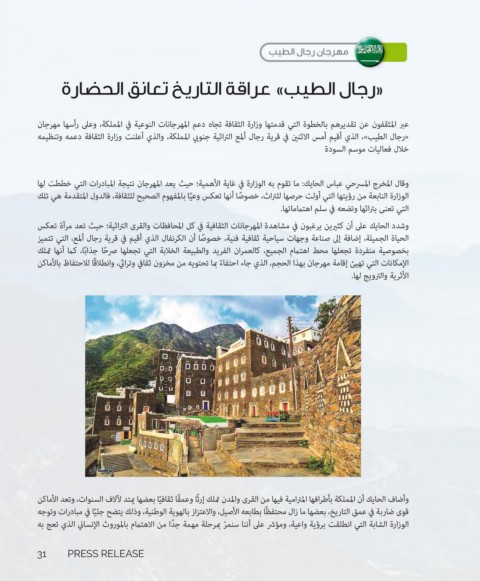 «رجال الطيب» ،الذي أقيم أمس الاثنين في قرية رجال ألمع التراثية جنوبي المملكة ،والذي أعلنت وزارة الثقافة دعمه وتنظيمه