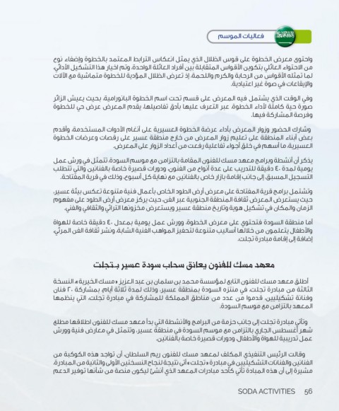 ‫شهر أغسطس الجاري بالتزامن مع موسم السودة في منطقة عسير‪ ،‬وتتمثل في معارض فنية وورش‬