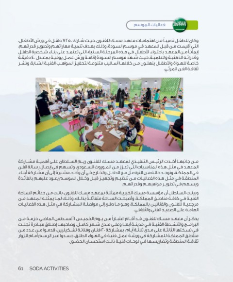 وكان للطفـل نصيبـ ًا مـن اهتمامـات معهـد مسـك للفنـون ،حيـث شـارك 7250طفـل فـي ورش الأطفـال،