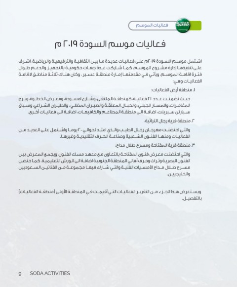 اشـتمل موسـم السـودة ٢٠١٩م علـى فعاليـات عديـدة مـا بيـن الثقافيـة والترفيهيـة والرياضيـة ،اشـرف