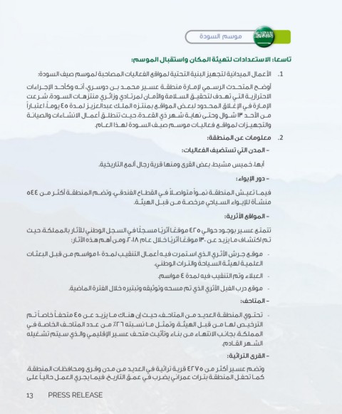 المملكـة ،بجانـب الانتهـاء مـن بنـاء وتأثيـث متحـف عسـير الإقليمـي والـذي سـيتم تشـغيله