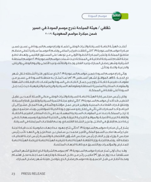 ويأتـي إدراج موسـم السـودة ضمـن مواسـم السـعودية ،2019الـذي سـتكون فتـرة أنشـطته خـال شـهر