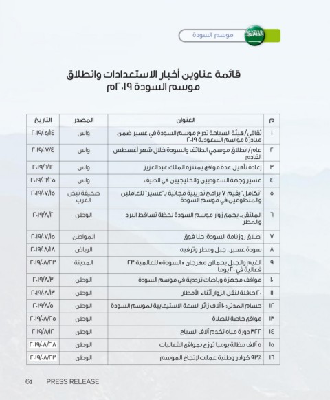 2019/6/12 واس عام /انطلاق موسمي الطائف والسودة خلال شهر أغسطس