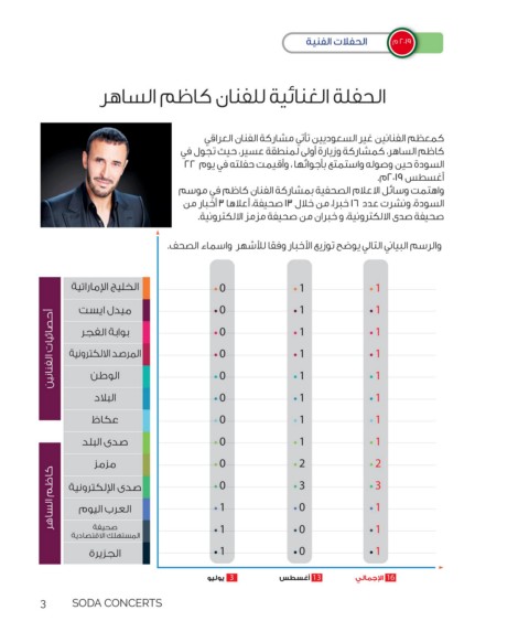 واهتمت وسائل الاعلام الصحفية بمشاركة الفنان كاظم في موسم