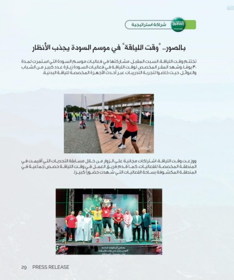 30يو ًمـا ،وشـهد المقـر المخصـص لوقـت اللياقـة فـي فعاليـات السـودة زيـارة عـدد كبيـر مـن الشـباب