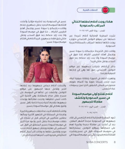 موعد وتفاصيل حفلها به ،وكانت آخر أعمال أحلام في «موسم السودة» الأول في عسير.ونشرت