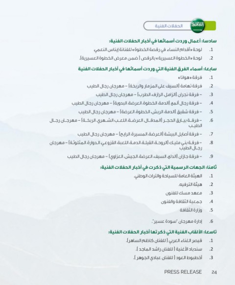 ثامنا :الجهات الرسمية التي ذكرت في أخبار الحفلات الفنية: