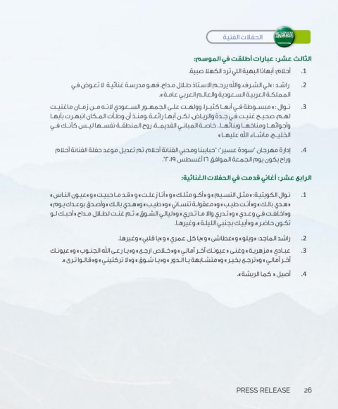 4.4إدارة مهرجان ”سودة عسير“” :حبايبنا ومحبي الفنانة أحلام ،تم تعديل موعد حفلة الفنانة أحلام