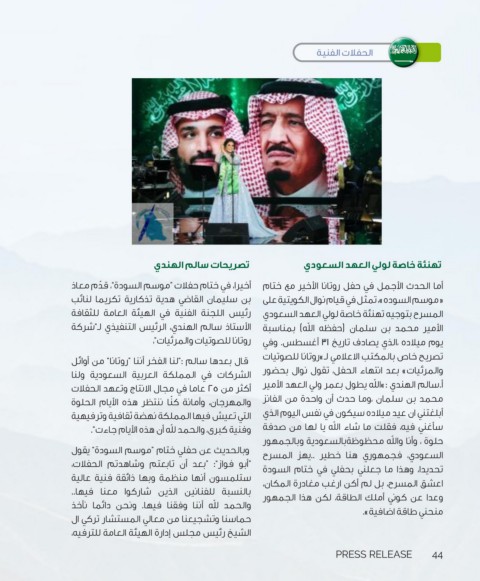 ‫رئيس اللجنة الفنية في الهيئة العامة للثقافة‬          ‫المسرح بتوجيه تهنئة خاصة لولي العهد السعودي‬