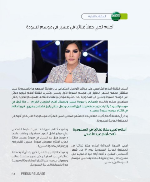 العرب تفتتح مهرجان سودة عسير ..تنتظركم تحيي النجمة الإماراتية أحلام ،حفلا غنائيا فى