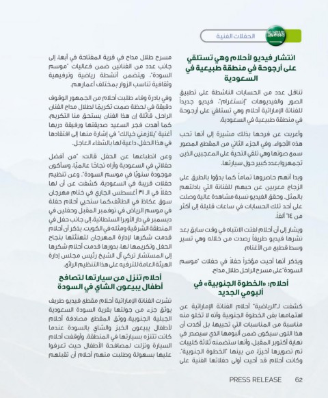 ‫سوق عكاظ في الطائف‪.‬كما ستحيي أحلام حفلة‬              ‫بالمثل‪ .‬وحقق الفيديو نسبة مشاهدة عالية وصلت‬