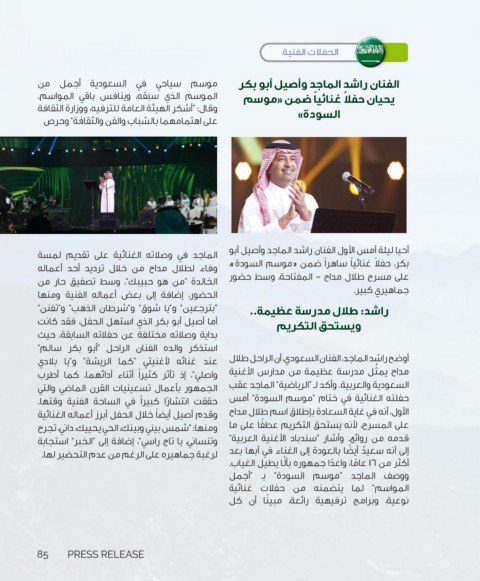 وفاء لطلال مداح من خلال ترديد أحد أعماله بكر ،حفل ًا غنائي ًا ساهراً ضمن «موسم السودة»،