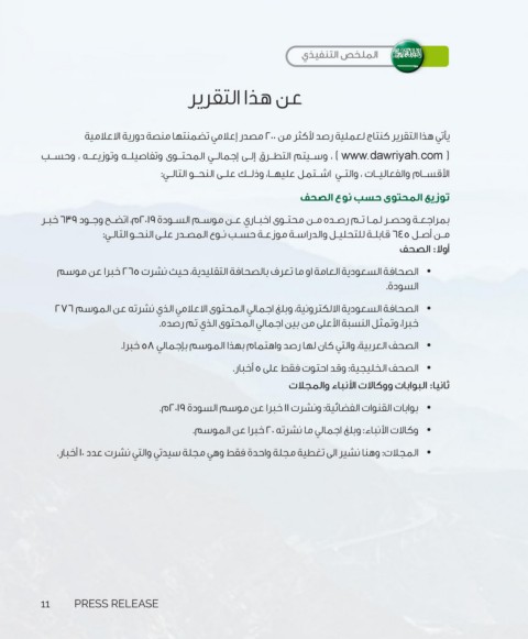 • •الصحافة السعودية الالكترونية ،وبلغ اجمالي المحتوى الاعلامي الذي نشرته عن الموسم ٢٧٦