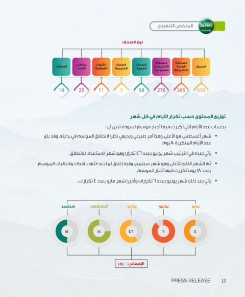 • •شهر أغسطس هو الأعلى ،وهذا أمر طبيعي وبديهي نظرا لانطلاق الموسم في بدايته ،وقد بلغ