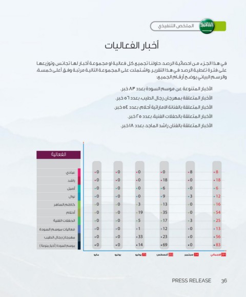 فـي هـذا الجـزء مـن احصائيـة الرصـد ،حاولنـا تجميـع كل فعاليـة او مجموعـة أخبـار لهـا تجانـس وتوزيعهـا