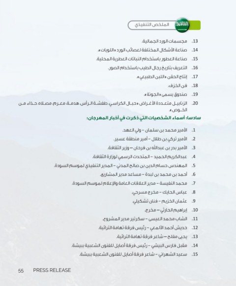 سادسا :أسماء الشخصيات التي ذكرت في أخبار المهرجان: