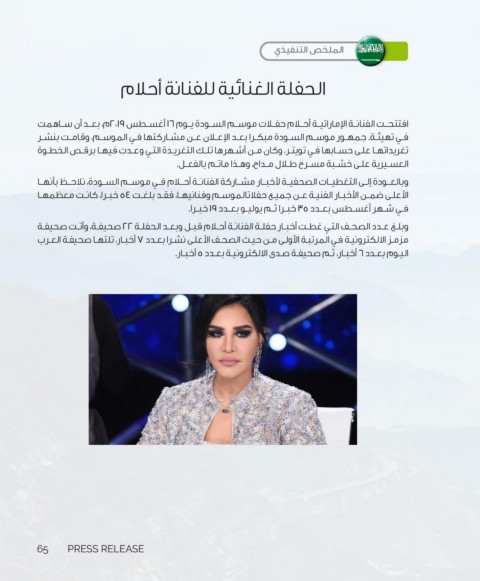 وبلـغ عـدد الصحـف التـي غطـت أخبـار حفلـة الفنانـة أحـام قبـل وبعـد الحفلـة ٢٢صحيفـة ،وأتـت صحيفـة