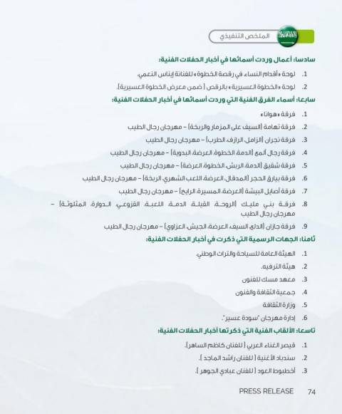 ثامنا :الجهات الرسمية التي ذكرت في أخبار الحفلات الفنية: