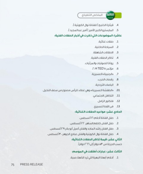 الحادي عشر :مواعيد الحفلات الغنائية: