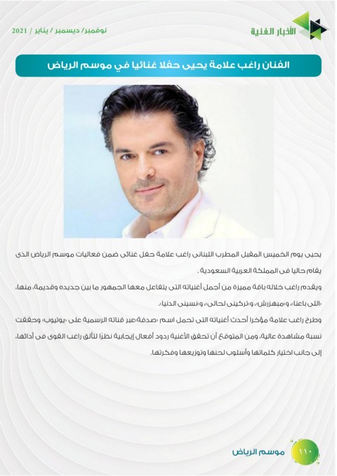 ‫يحيى يوم الخميس المقبل المطرب اللبنانى راغب علامة حفل غنائى ضمن فعاليات موسم الرياض الذى‬
