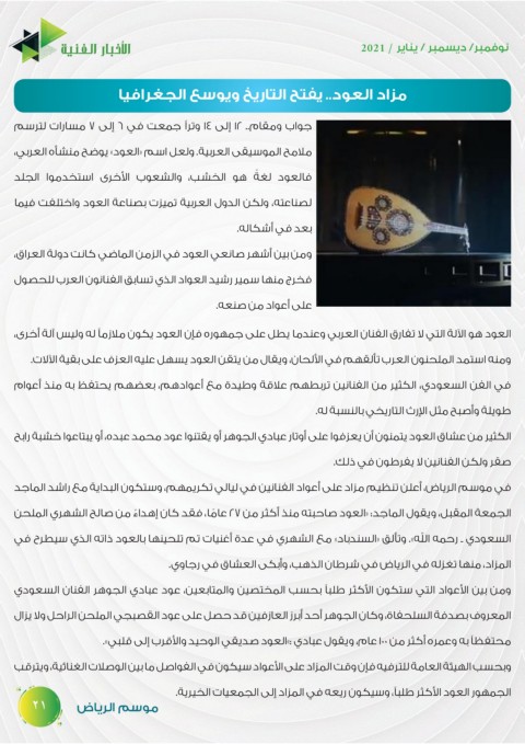 الجمهور العود الأكثر طلبًا ،وسيكون ريعه في المزاد إلى الجمعيات الخيرية.