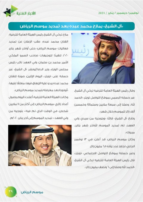 ولي العهد -تمديد الموسم إلى آخر يناير ٢٠٢٠م. قال رئيس الهيئة العامة للترفيه تركي آل الشيخ:
