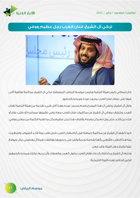 تركي آل الشيخ :فنان العرب رجل عظيم ووفي