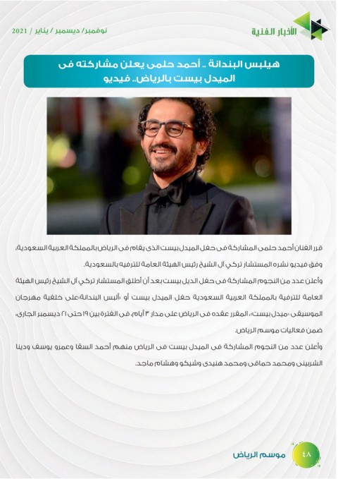 قرر الفنان أحمد حلمى المشاركة فى حفل الميدل بيست الذى يقام فى الرياض بالمملكة العربية السعودية،