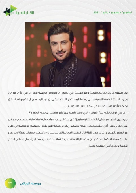 ‫نحن نملك كل الإمكانيات الفنية واللوجستية التي تجعل من الرياض عاصمة للفن الراقي‪ ،‬وأرى أننا مع‬
