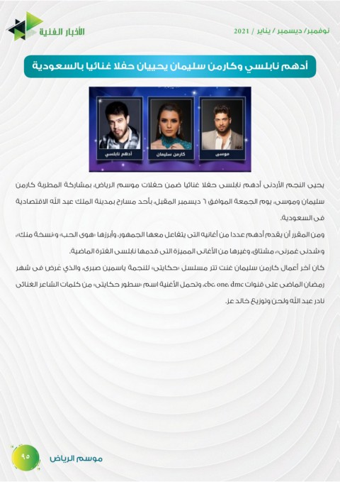 يحيى النجم الأردنى أدهم نابلسى حفلا غنائيا ضمن حفلات موسم الرياض ،بمشاركة المطربة كارمن