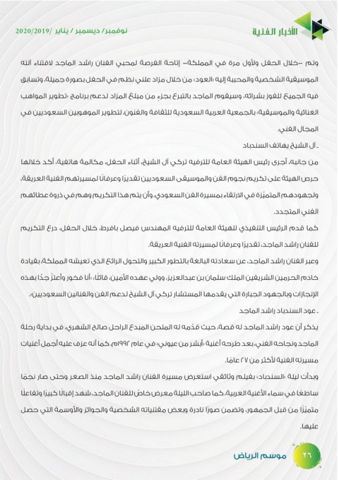 للفنان راشد الماجد ،تقدي ًرا وعرفا ًنا لمسيرته الفنية العريقة.
