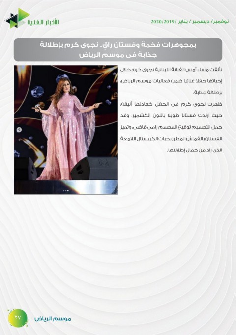 إحيائها حفلا غنائيا ضمن فعاليات موسم الرياض،