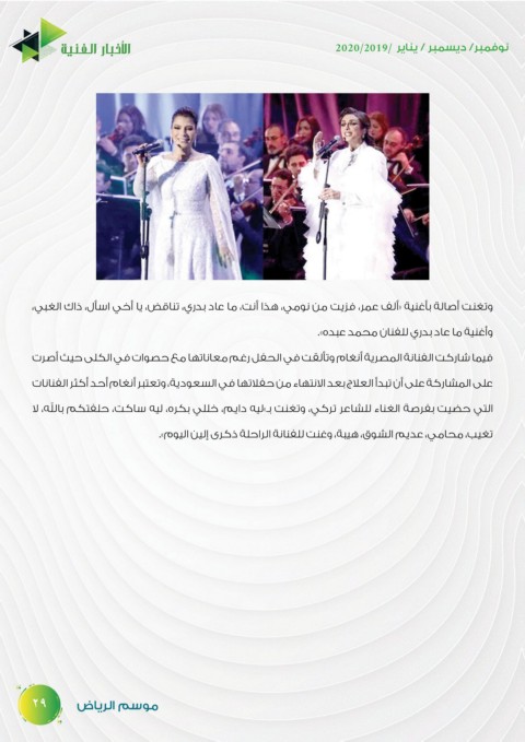 وأغنية ما عاد بدري للفنان محمد عبده».