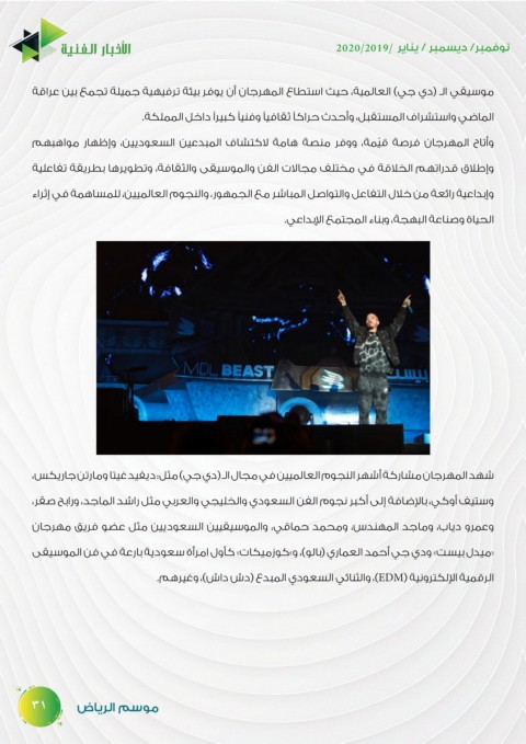 موسيقي الـ (دي جي) العالمية ،حيث استطاع المهرجان أن يوفر بيئة ترفيهية جميلة تجمع بين عراقة