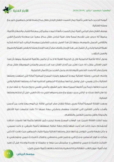 والثقافي الجميل بالموسم ،منوهًا بأن هذا العمل ُيح َسب للعاملين بموسم الرياض ،كما ق َّدم شكره