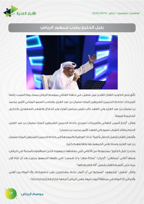 تأ ّلق نبض الكويت الفنان القدير نبيل شعيل ،في حفله الغنائي بموسم الرياض مساء يوم السبت ،رافعًا