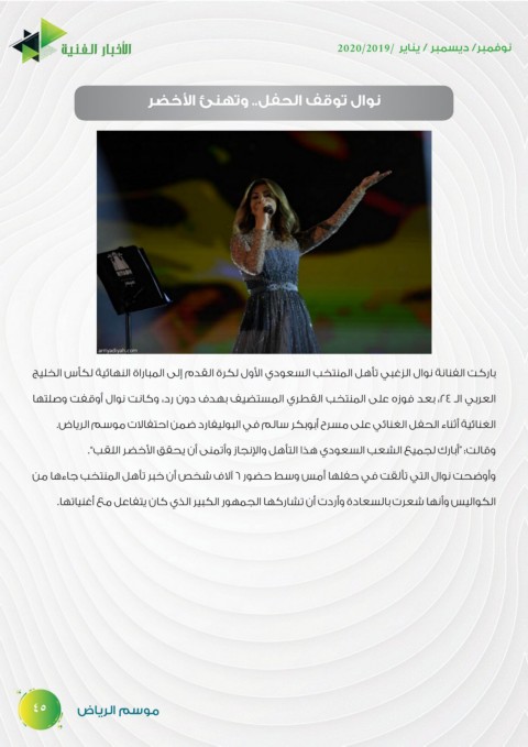 باركت الفنانة نوال الزغبي تأهل المنتخب السعودي الأول لكرة القدم إلى المباراة النهائية لكأس الخليج