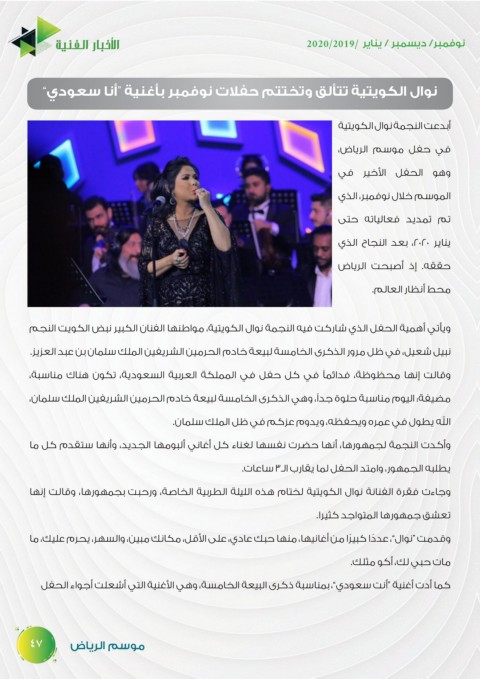 نوال الكويتية تتألق وتختتم حفلات نوفمبر بأغنية “أنا سعودي”