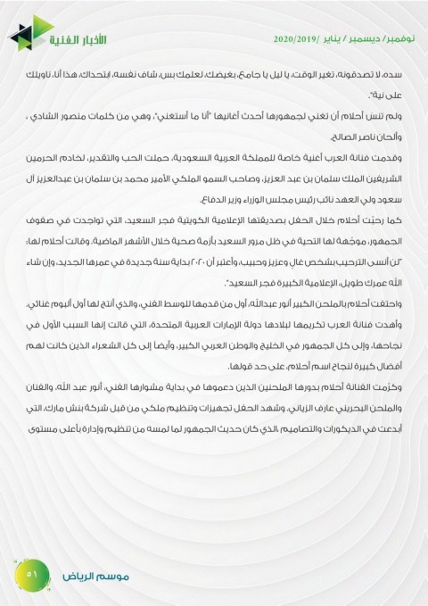 الجمهور ،مو ّجهة لها التحية في ظل مرور السعيد بأزمة صحية خلال الأشهر الماضية .وقالت أحلام لها: