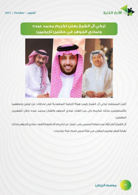 بالأسطورتين ،وذلك لتكريم كل من الفنان عبادي الجوهر والفنان محمد عبده خلال الشهرين