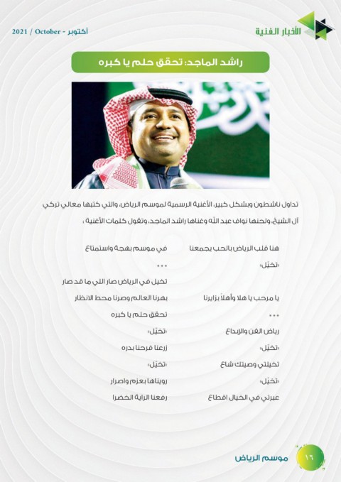 تداول ناشطون وبشكل كبير ،الأغنية الرسمية لموسم الرياض ،والتي كتبها معالي تركي