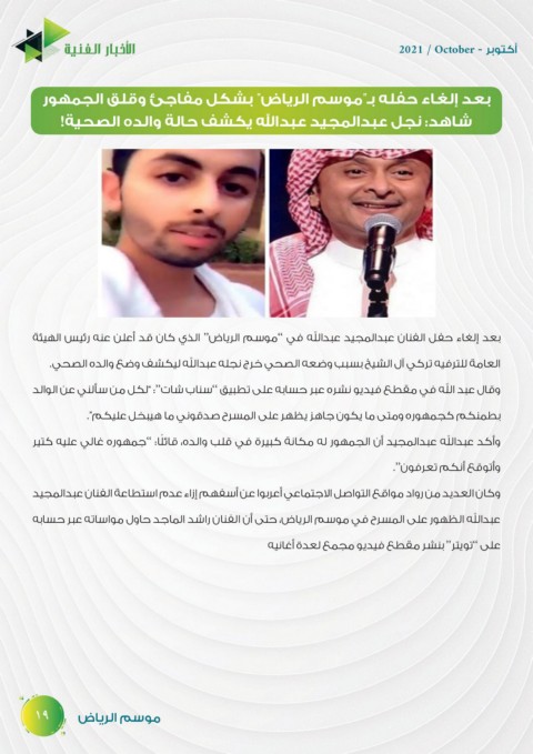 بعد إلغاء حفل الفنان عبدالمجيد عبدالله في ’’موسم الرياض‘‘ الذي كان قد أعلن عنه رئيس الهيئة