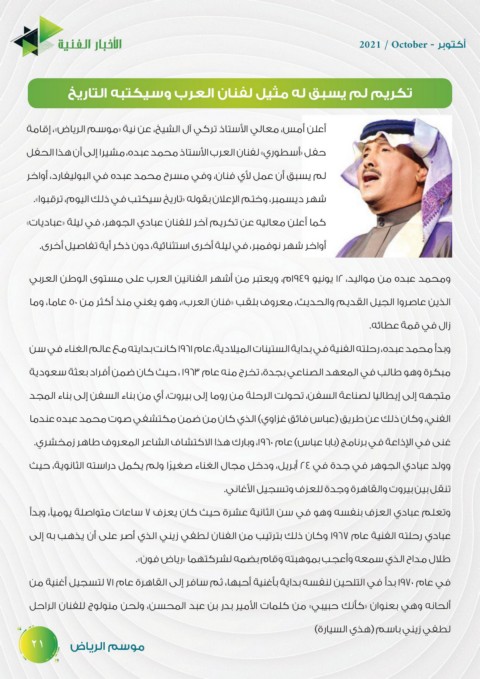 حفل «أسطوري» لفنان العرب الأستاذ محمد عبده ،مشيرا إلى أن هذا الحفل