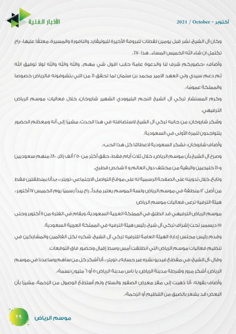 موسم الرياض الترفيهي قد انطلق في المملكة العربية السعودية ،ويقام في الفترة من 11أكتوبر وحتى