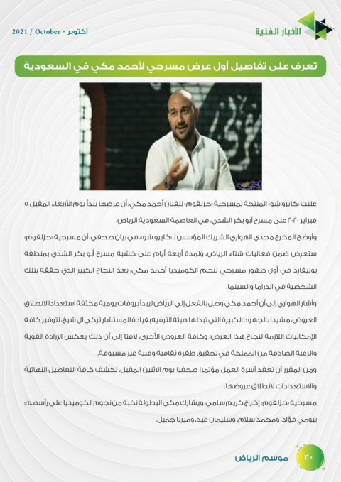 تعرف على تفاصيل أول عرض مسرحي لأحمد مكي في السعودية