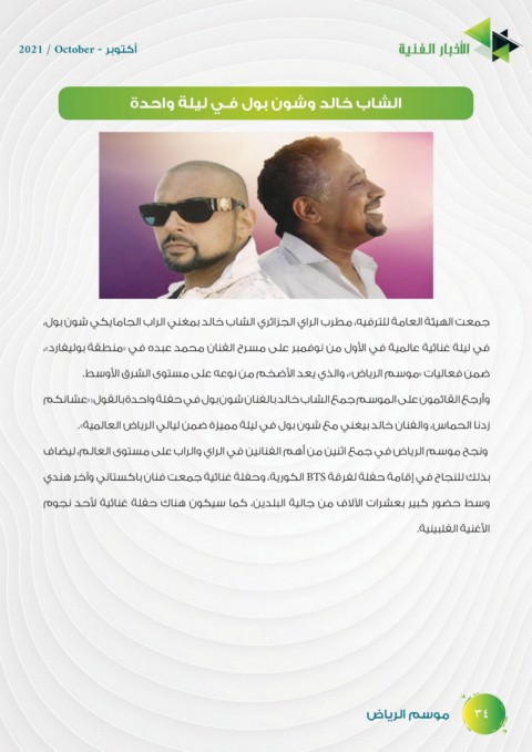 جمعت الهيئة العامة للترفيه ،مطرب الراي الجزائري الشاب خالد بمغني الراب الجامايكي شون بول،